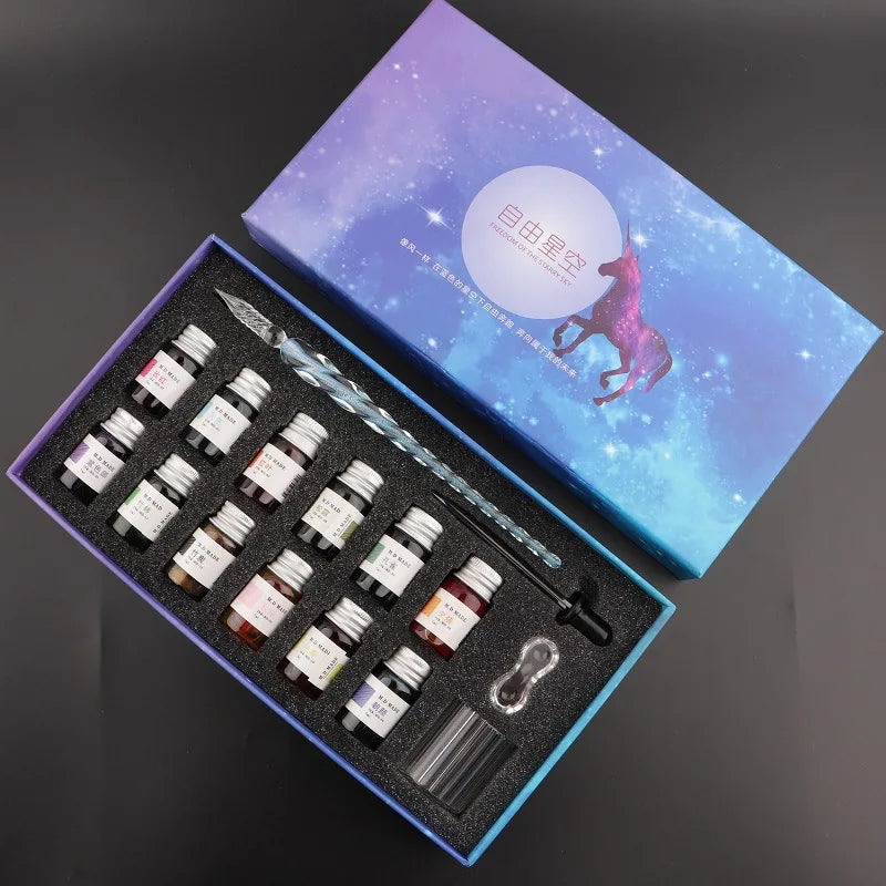 Starry Crystal Glass Dip Pen Crystal Vintage Glass Dip Pen For Art Writing Painting Signature Decoration Holiday Gift Set